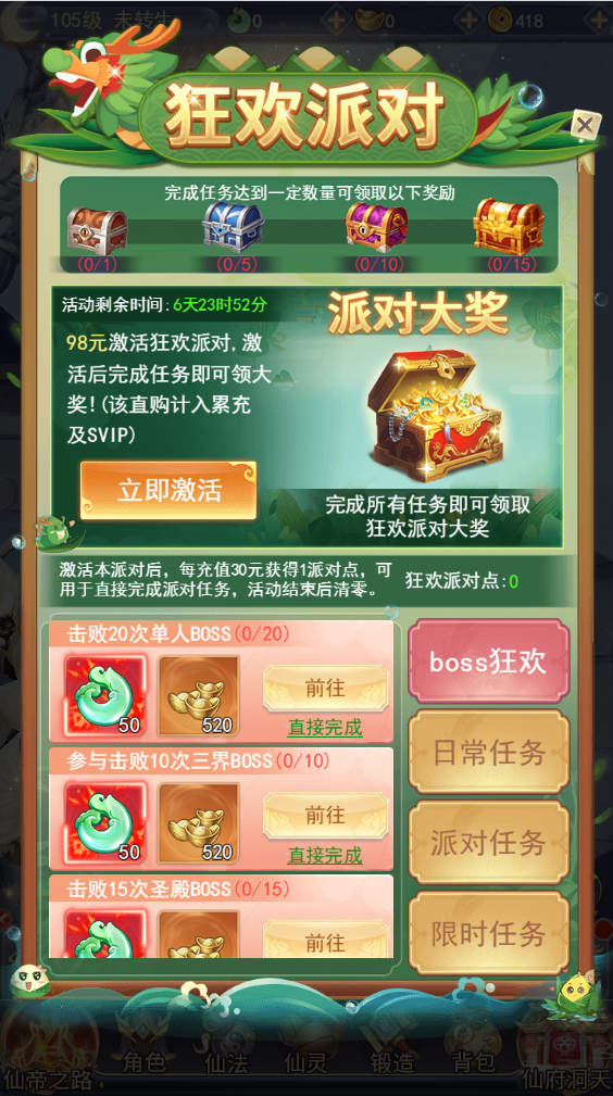 该派对需要购买激活,激活后完成任务即可获得奖励!